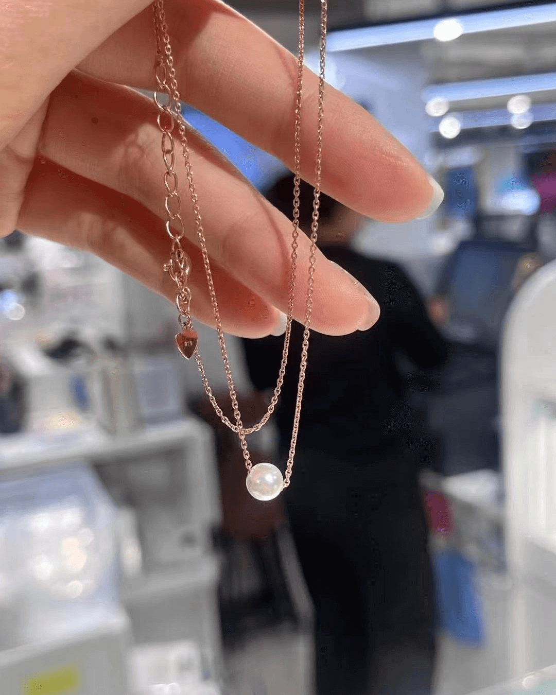 Necklace color is Rose Gold