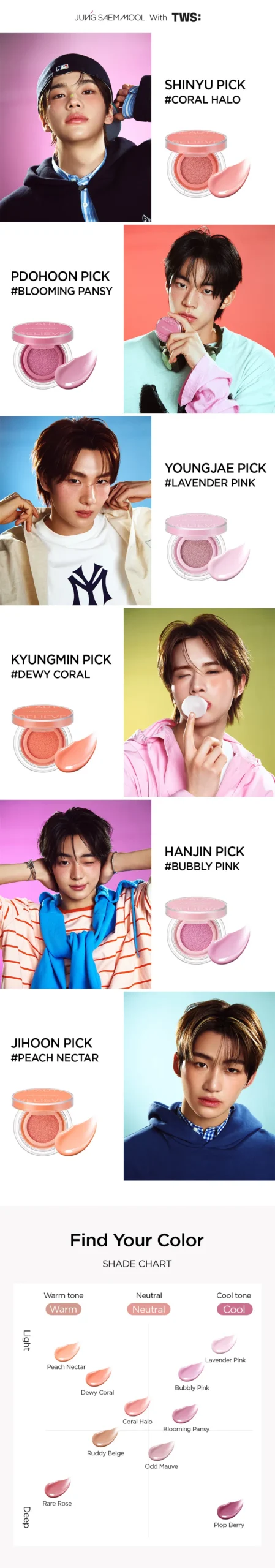 | Shade | Cloral Halo, Blooming Pansy, Lavender Pink, Dewy Coral, Bubbly Pink, Peach Nectar, Rare Rose, Ruddy Beige, Odd Mauve, Baby Pink |
