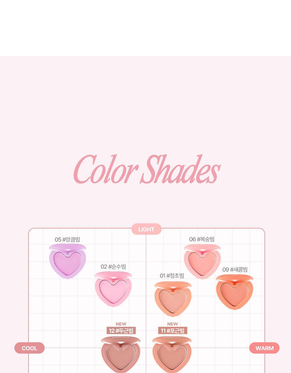 | Color | 01 Pure Cloral, 02 Innocent Pink, 03 Mood Red, 04 Heart Attack Red, 05 Cheeky Lavender, 06 Fluffy Peach, 16 Honey Peach |